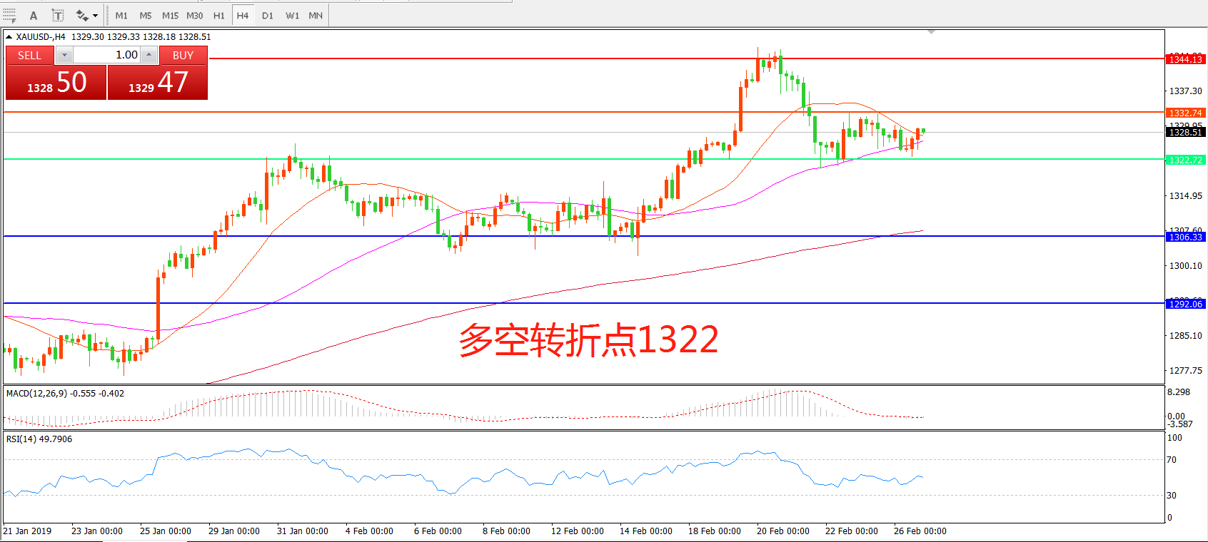 多空转折点:1322.00