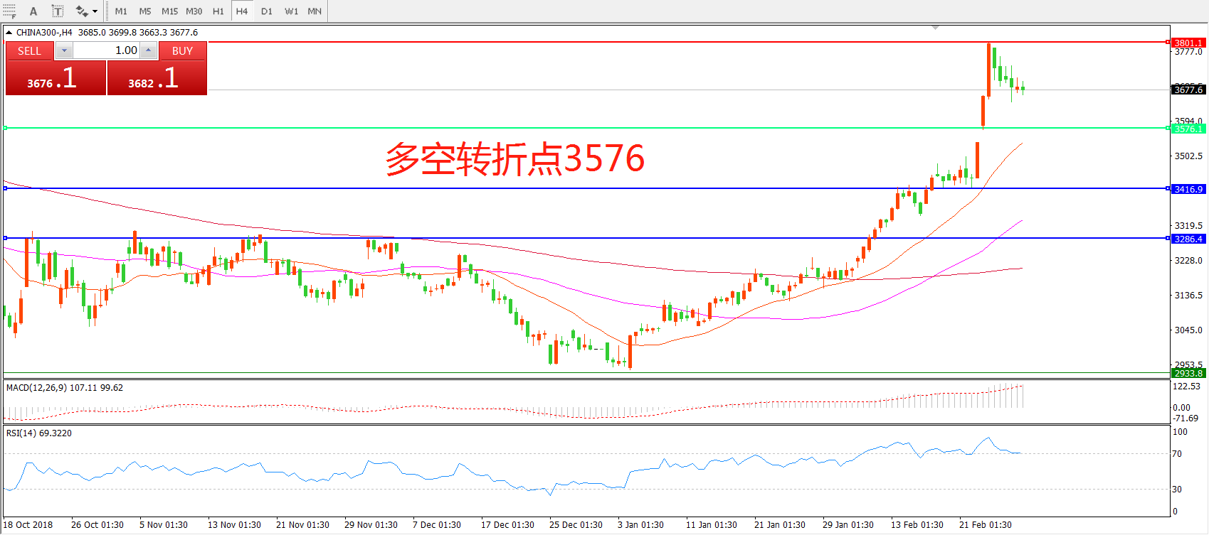中华指数300CHINA3004小时图