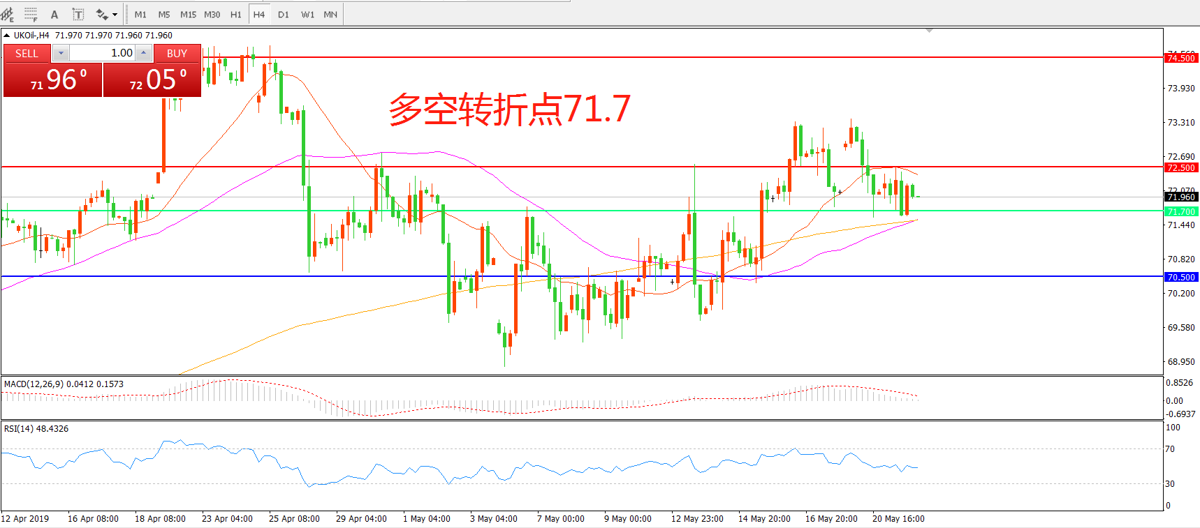 多空转折点:71.70