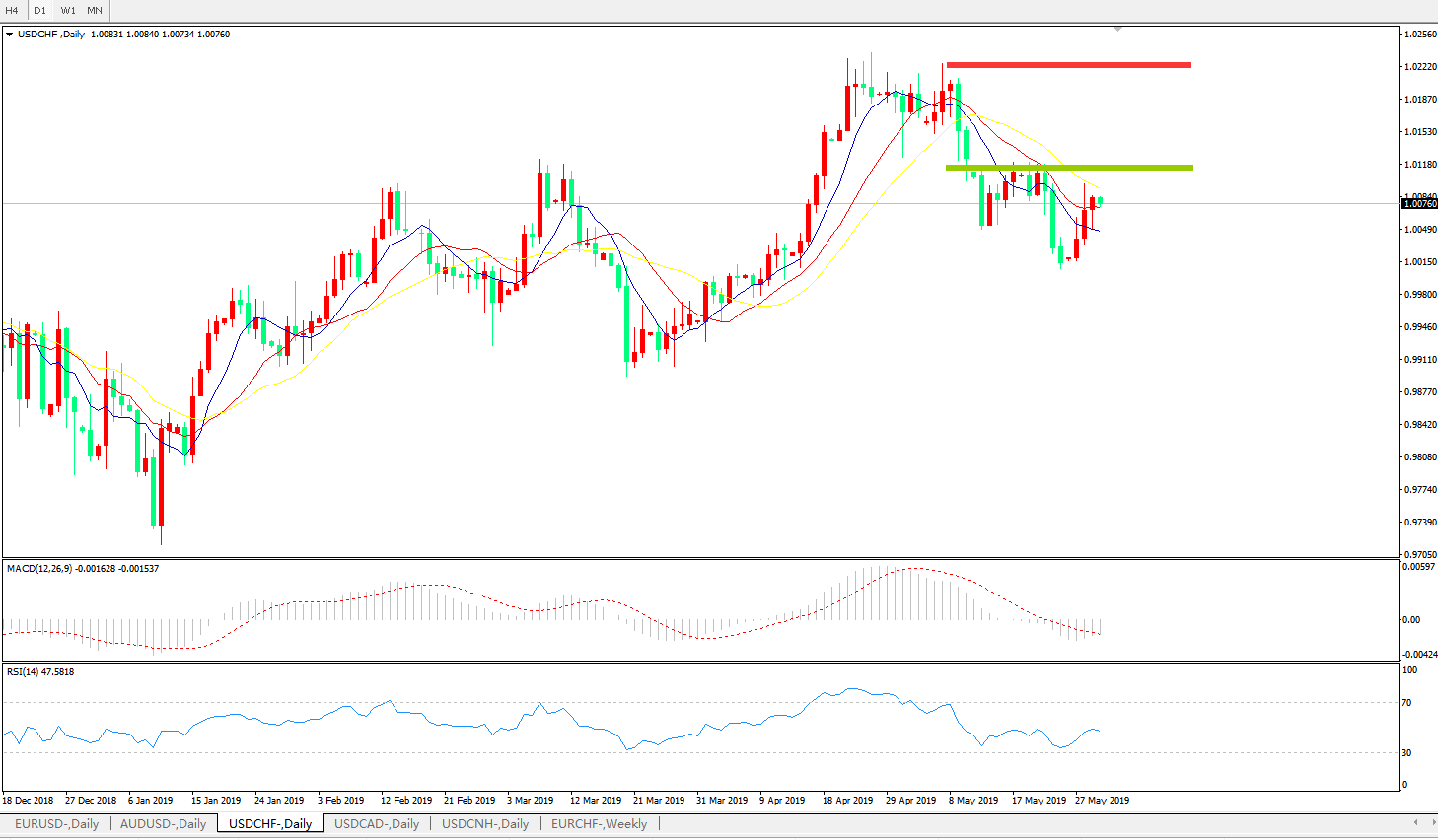 美元兑瑞郎USDCHF   日线图: