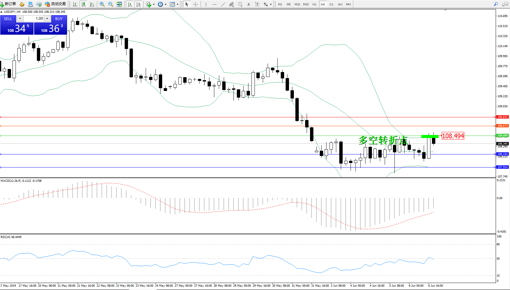 技术点评:高位下行至108附近支撑窄幅震荡中,维持布林带通道内侧整理走势,关注布林带上轨附近节点,MACD指标空头区域缓慢上行,有回归0轴线迹象,RSI指标纠结于50均衡线附近徘徊;