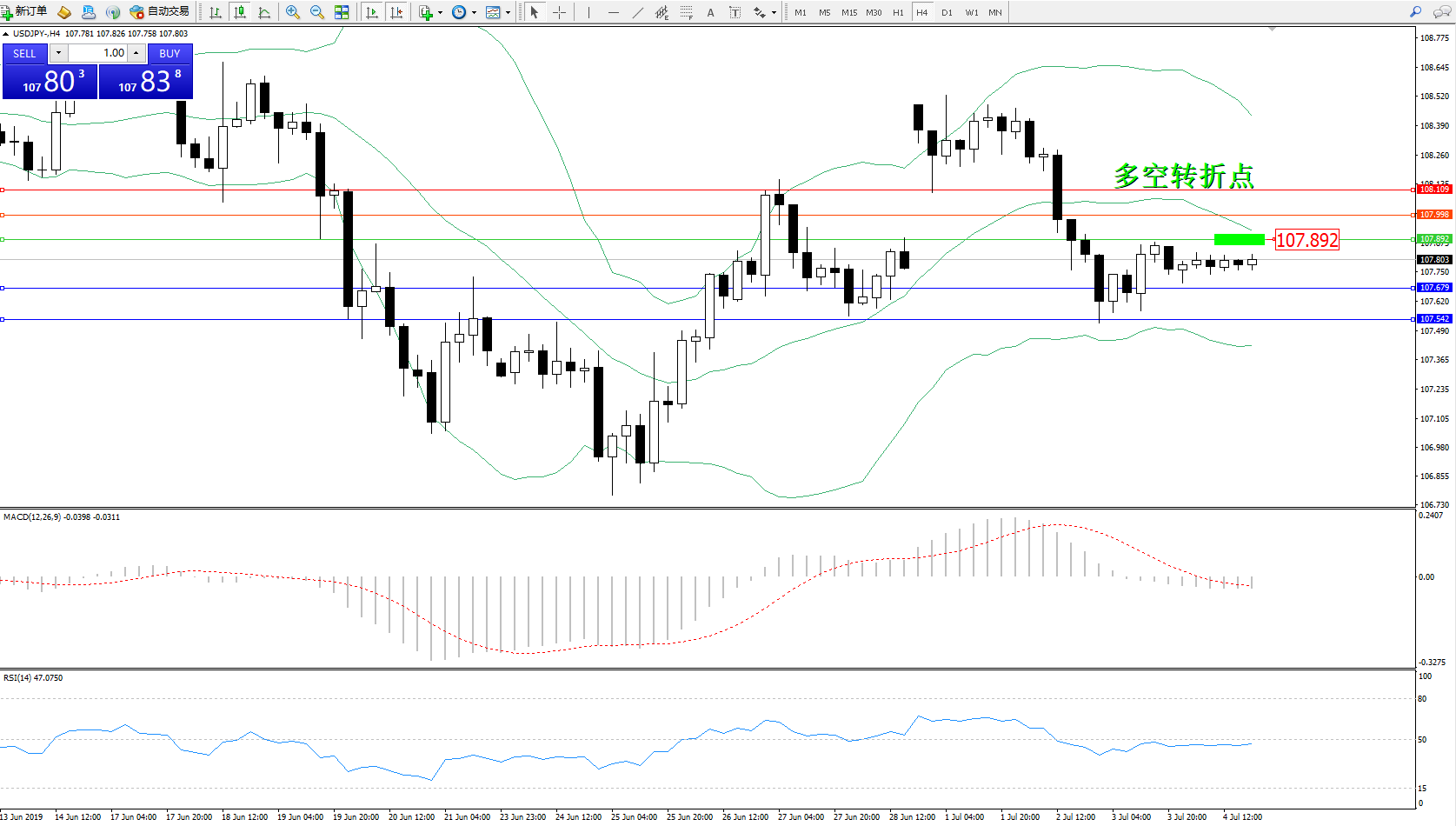 交易策略:107.892下方看跌,目标107.679107.542