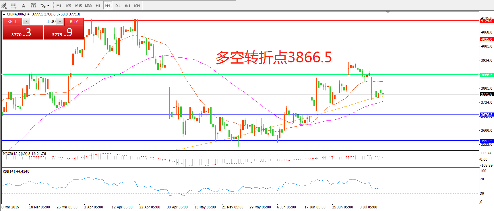 沪深300指数CHINA300 4小时图