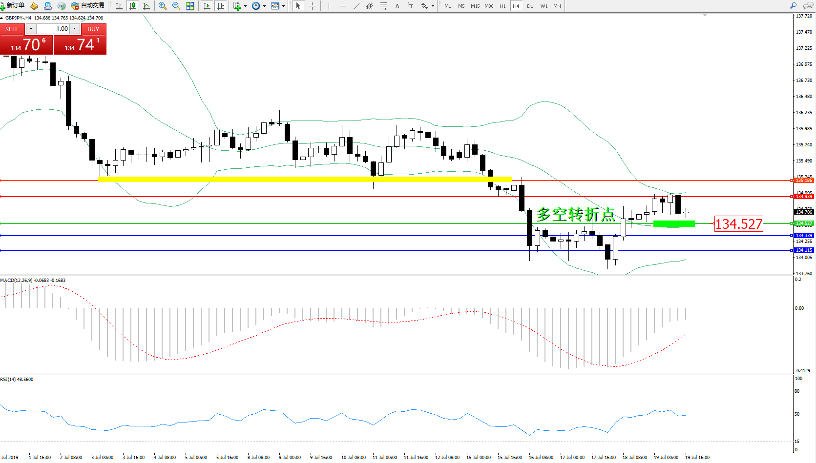 交易策略:134.527上方看涨,目标134.939、135.186