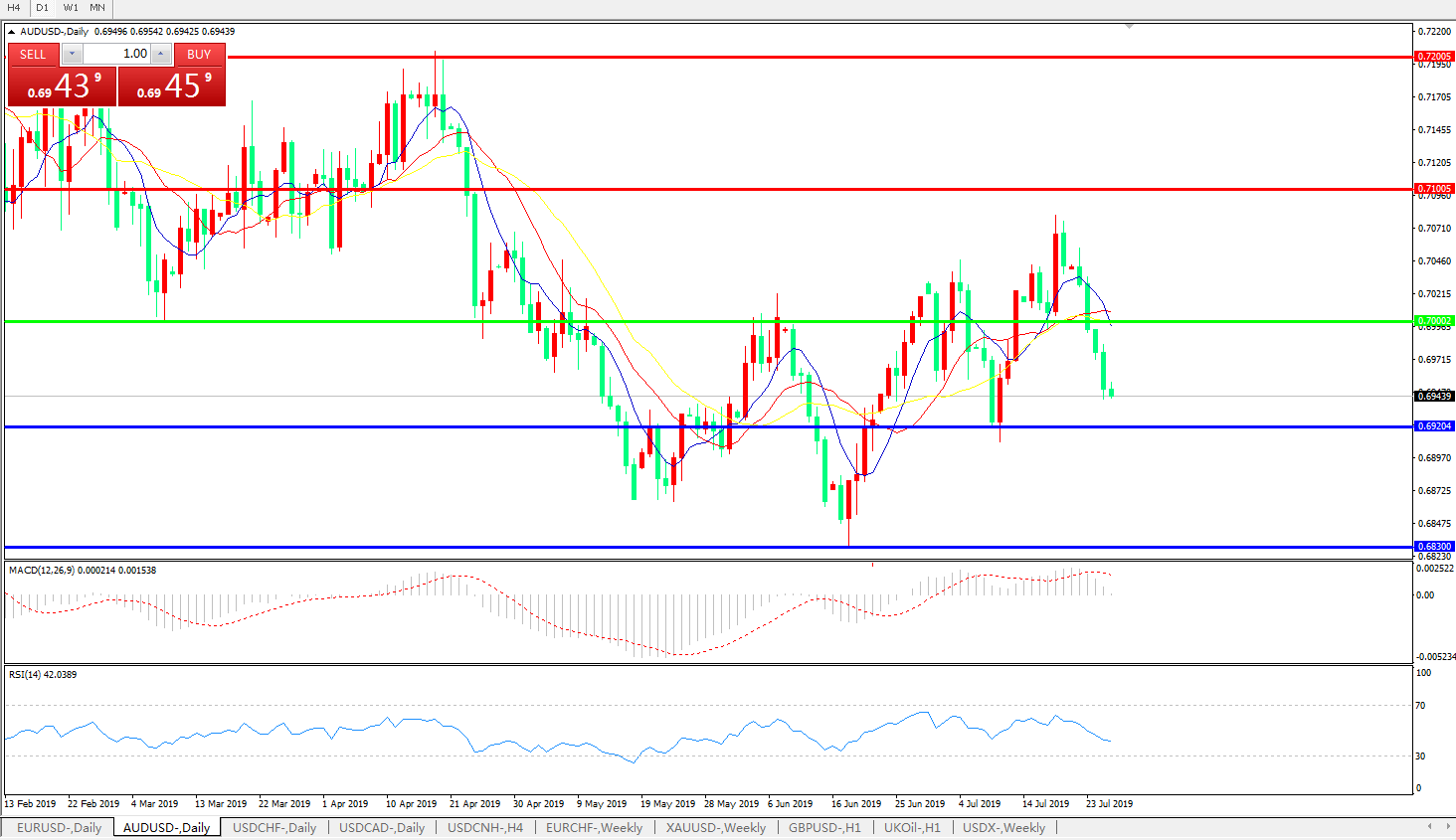 备选策略:0.7000上方看涨,目标0.7100、0.7200