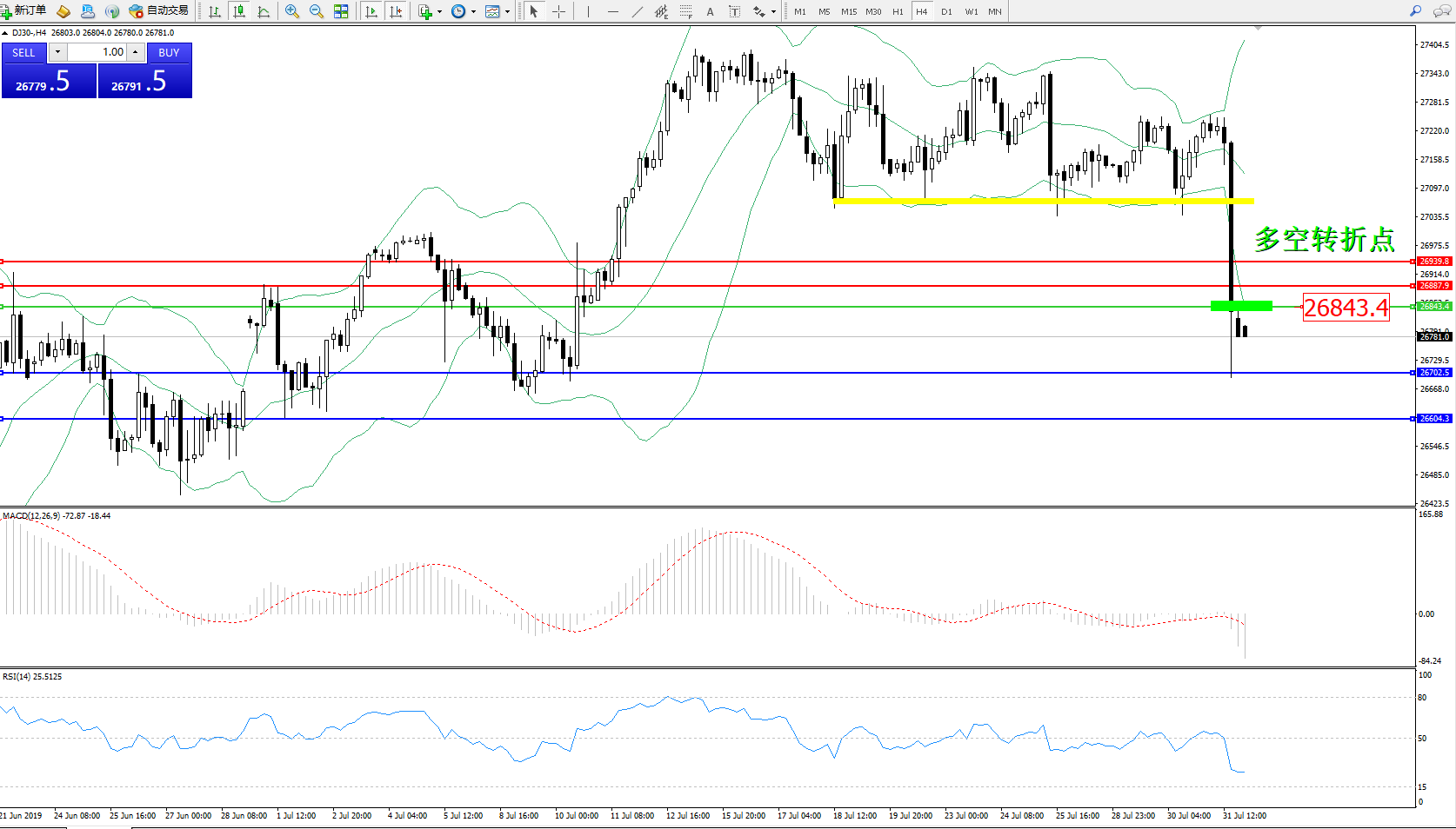 交易策略:26843下方看跌,目标26702、26604