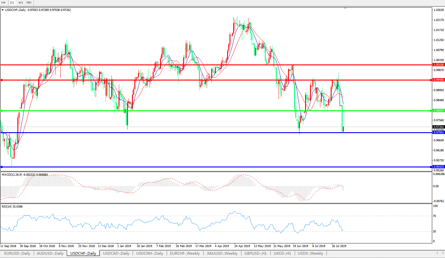 美元兑瑞郎USDCHF   日线图: