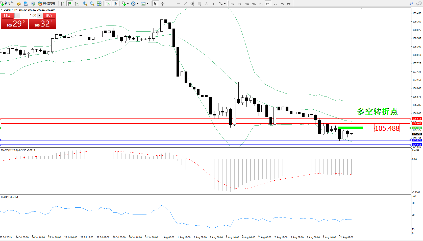 备选策略:105.488上方看涨,目标105.647105.813