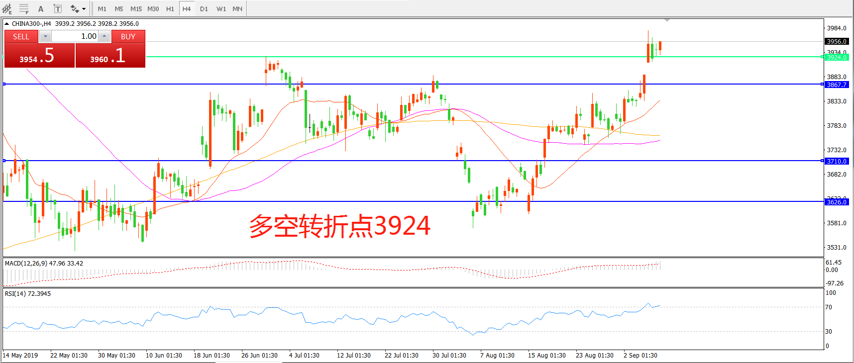 多空转折点:3924.00