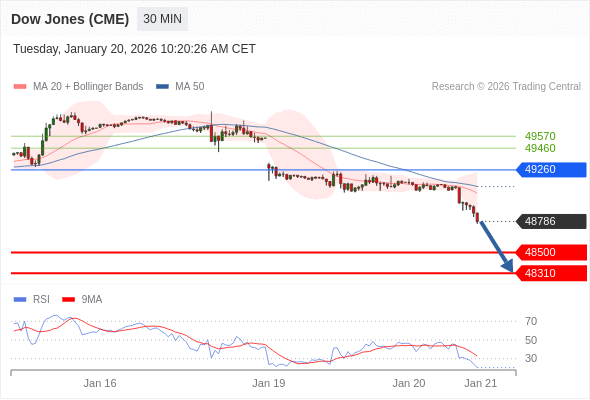 在 49260 之下,看跌,目标价位为 48500 ,然后为 48310 。