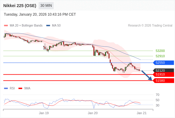 交易策略: 在 52550 之下,看跌,目标价位为 51910 ,然后为 51580 。