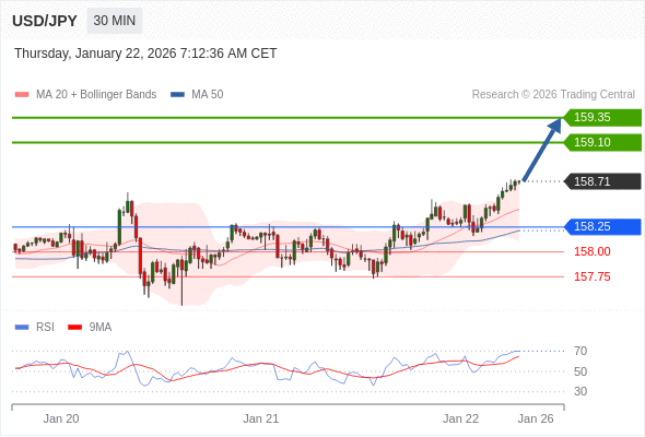 在 158.25 之上,看涨,目标价位为 159.10 ,然后为 159.35 。