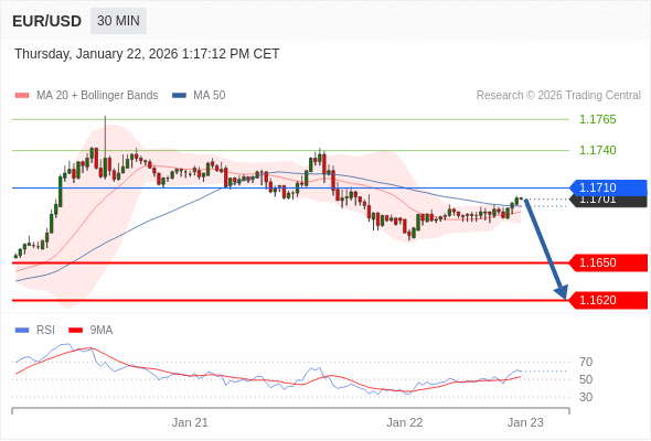 交易策略: 在 1.1710 之下,看跌,目标价位为 1.1650 ,然后为 1.1620 。