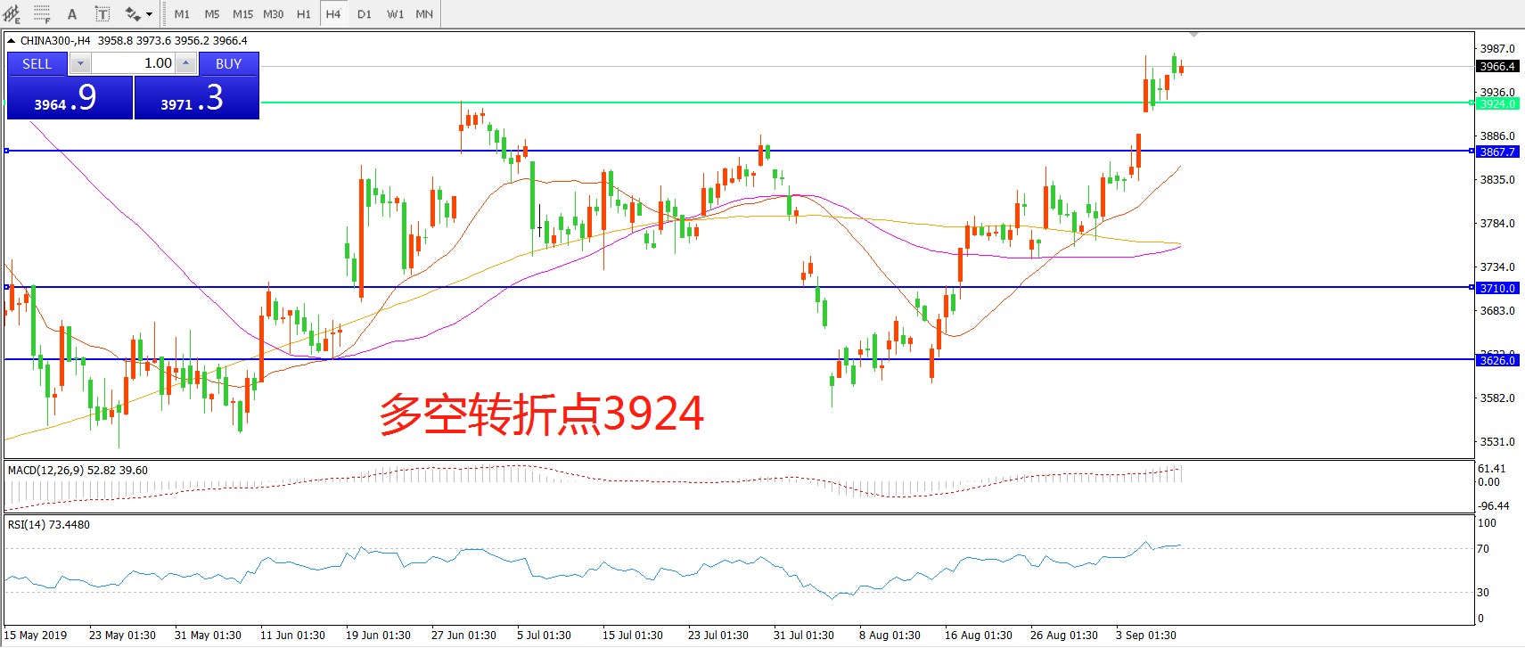 多空转折点:3924.00