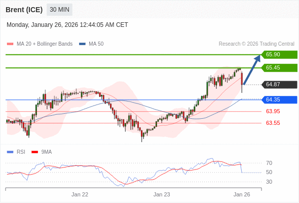 在 64.35 之上,看涨,目标价位为 65.45 ,然后为 65.90 。