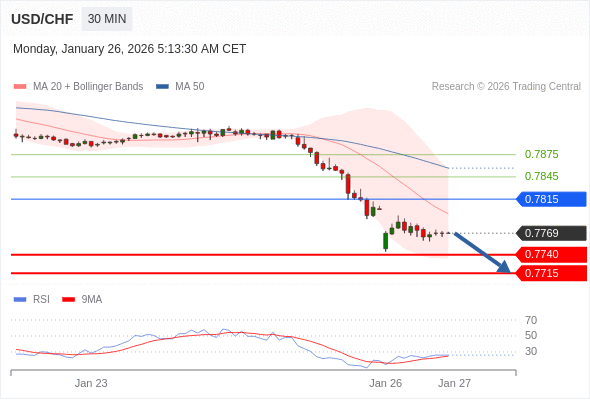 交易策略: 在 0.7815 之下,看跌,目标价位为 0.7740 ,然后为 0.7715 。