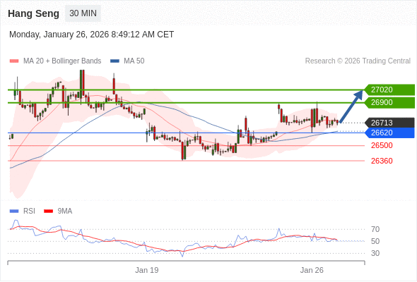 在 26620 之上,看涨,目标价位为 26900 ,然后为 27020 。
