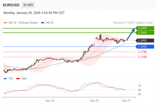 交易策略: 在 1.1820 之上,看涨,目标价位为 1.1900 ,然后为 1.1925 。