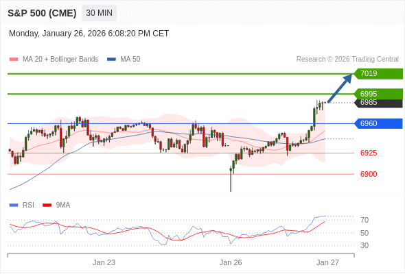 在 6960 之上,看涨,目标价位为 6995 ,然后为 7019 。