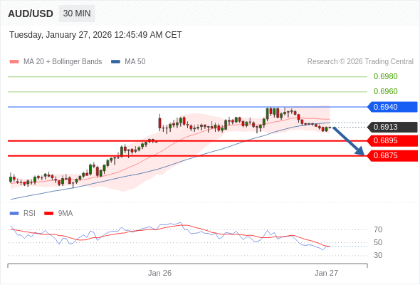 在 0.6940 之下,看跌,目标价位为 0.6895 ,然后为 0.6875 。