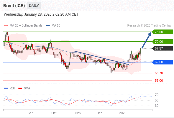 在 62.60 之上,看涨,目标价位为 70.00 ,然后为 73.50 。