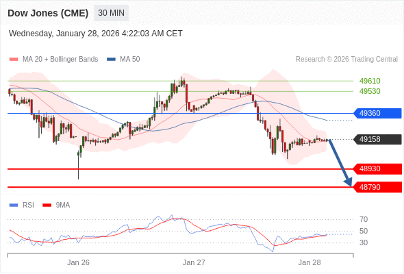 在 49360 之下,看跌,目标价位为 48930 ,然后为 48790 。