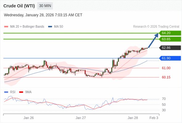 在 61.90 之上,看涨,目标价位为 63.65 ,然后为 64.20 。