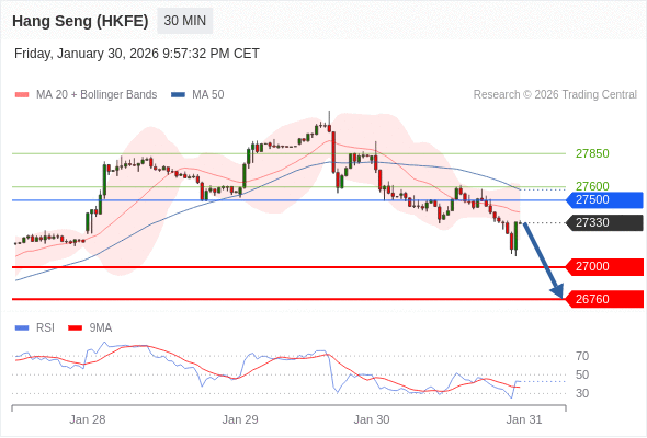 交易策略: 在 27500 之下,看跌,目标价位为 27000 ,然后为 26900 。