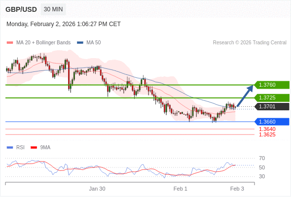 在 1.3660 之上,看涨,目标价位为 1.3725 ,然后为 1.3760 。