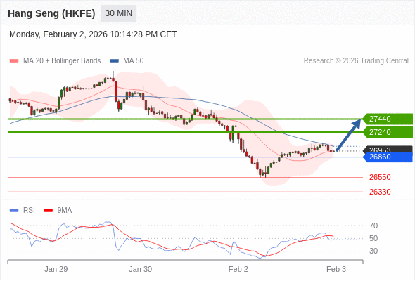 在 26860 之上,看涨,目标价位为 27240 ,然后为 27440 。
