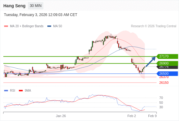 在 26500 之上,看涨,目标价位为 26900 ,然后为 27170 。