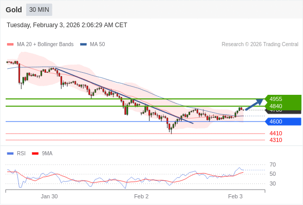 在 4600 之上,看涨,目标价位为 4840 ,然后为 4955 。