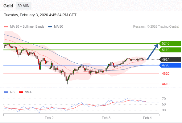 在 4795 之上,看涨,目标价位为 5110 ,然后为 5240 。