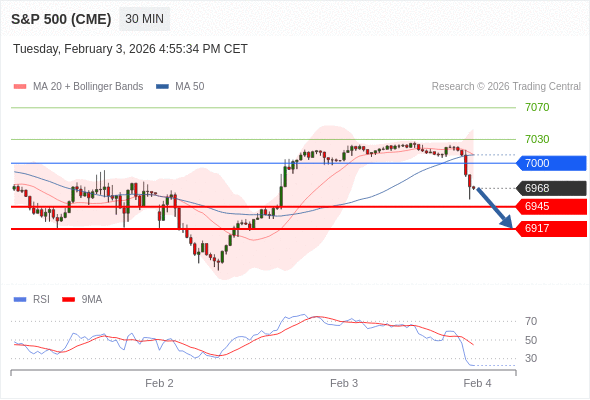 在 7000 之下,看跌,目标价位为 6945 ,然后为 6917 。