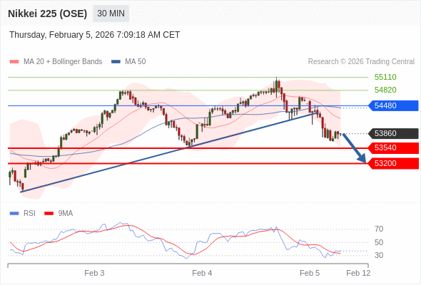 在 54480 之下,看跌,目标价位为 53540 ,然后为 53200 。