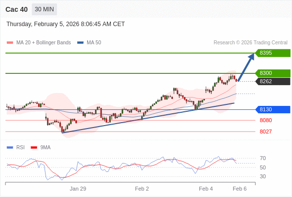 Cac 40 当日内: 在8130之上,看涨。