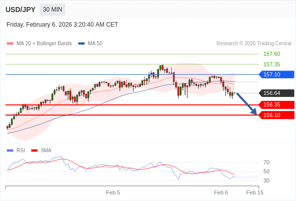 交易策略: 在 157.10 之下,看跌,目标价位为 156.35 ,然后为 156.10 。
