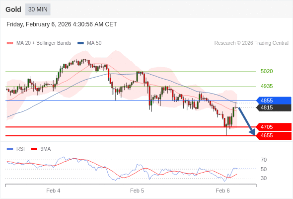 在 4855 之下,看跌,目标价位为 4705 ,然后为 4655 。