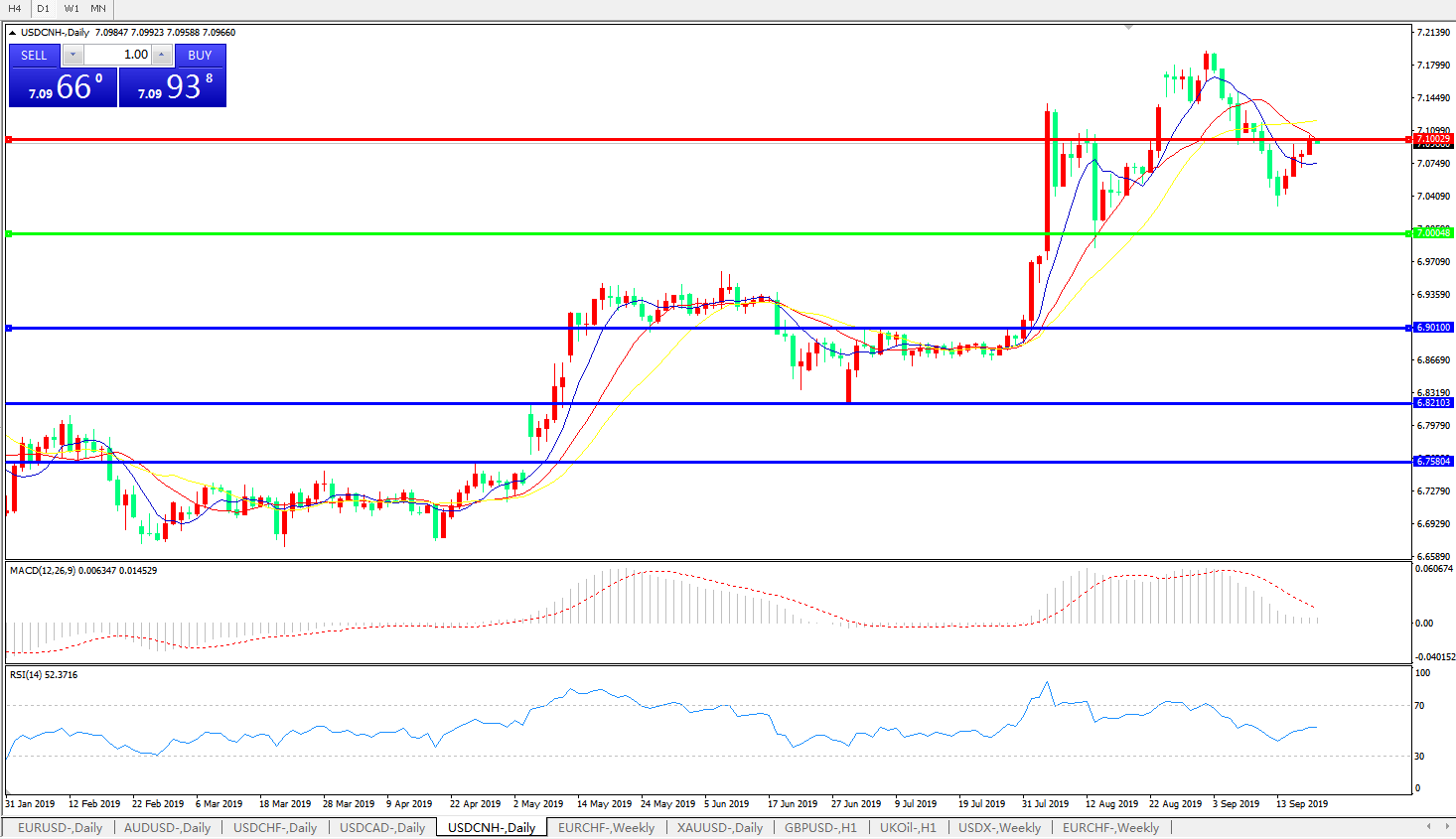 交易策略: 在7.0000之上,看涨,目标价位为7.1000,然后为7.2000。