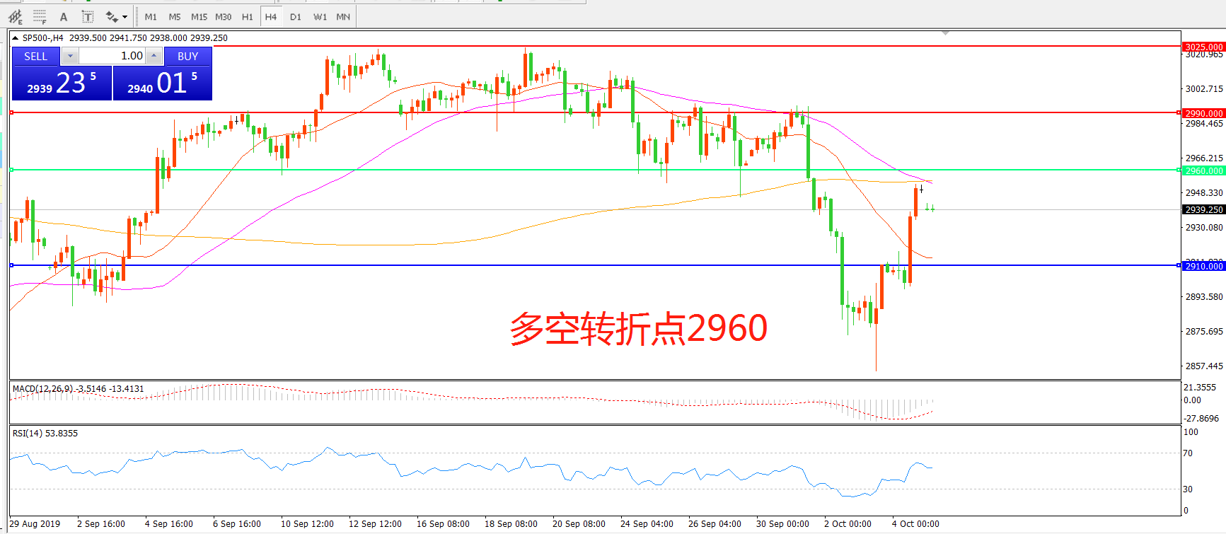 多空转折点:2960.00