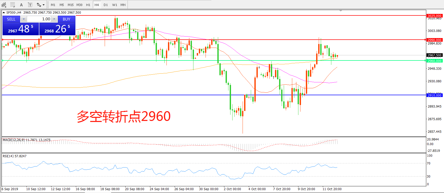 多空转折点:2960.00