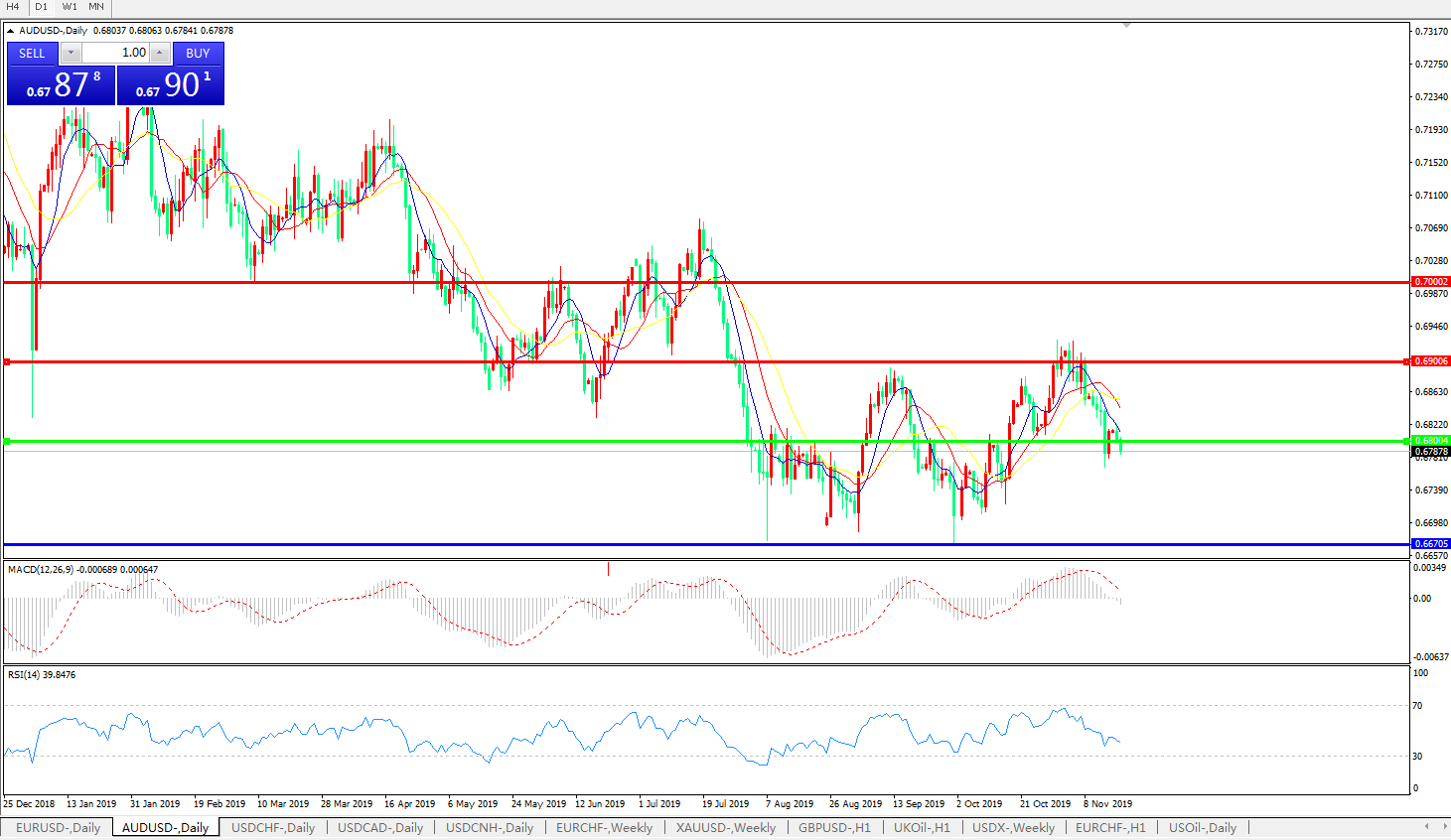 备选策略:0.6800上方看涨,目标0.6900、0.7000