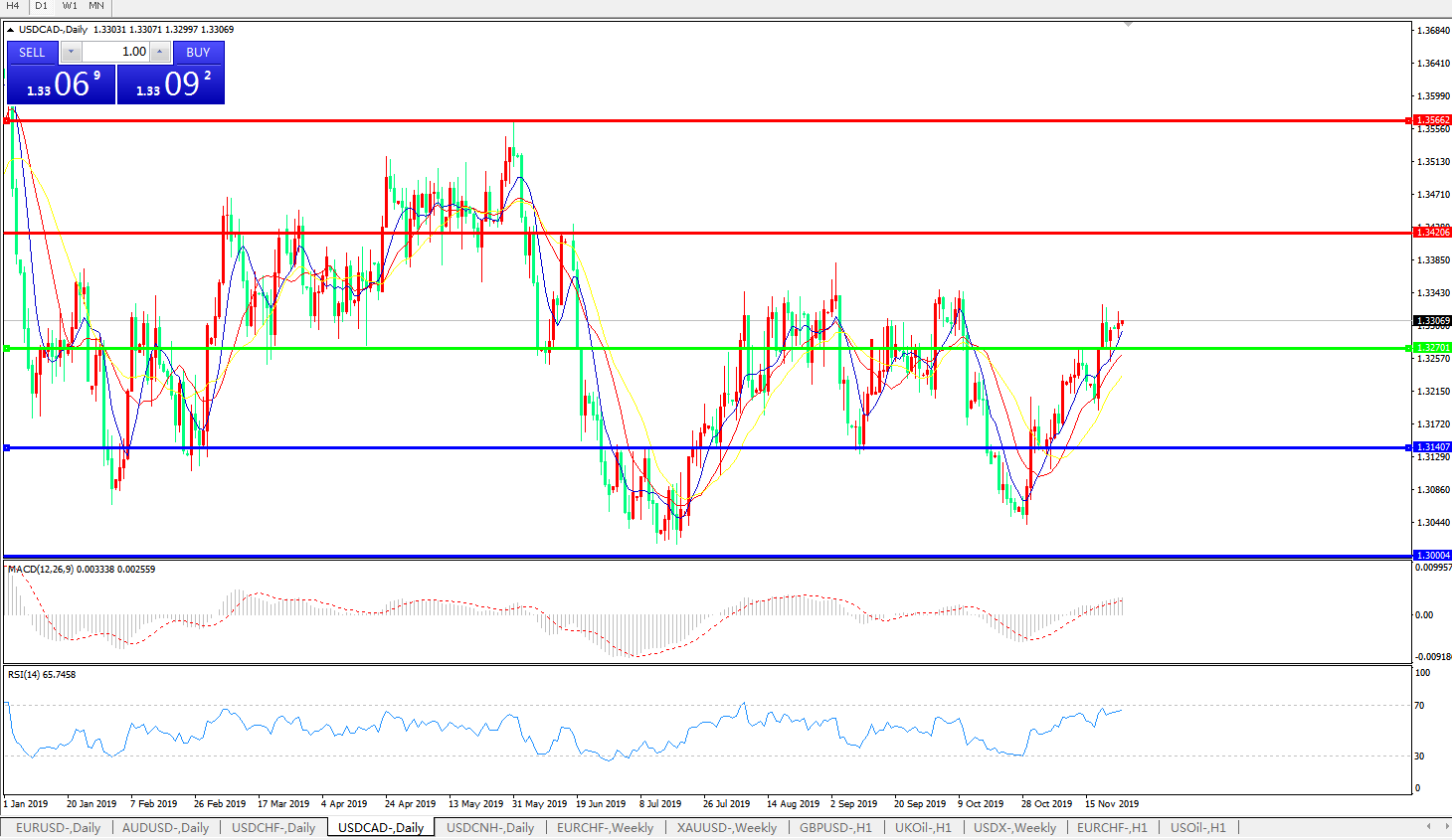 美元兑加元USDCAD    日线图: