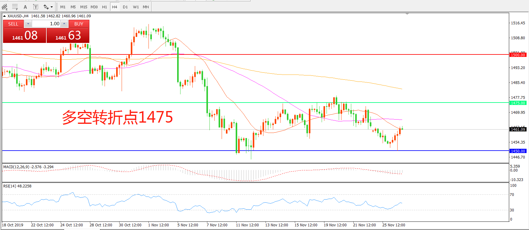 交易策略:在1475.00之下看跌,目标1450.00 1400.00