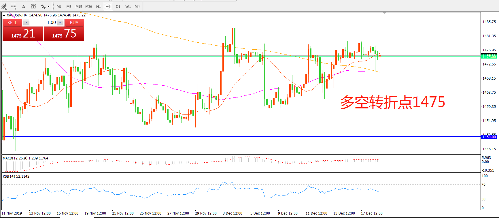 周三(12月18日),受强劲美国数据以及假期前流动性减弱的影响,金价整体波幅不大,窄幅震荡后收报1475.33美元/盎司。目前市场聚焦美国总统特朗普的弹劾辩论,据报道美国众议院目前已经开始就美国总统特朗普弹劾案条款进行辩论,辩论过后,众议院全体议员将对弹劾条款进行表决,如果弹劾条款被表决通过,将使特朗普成为美国历史上第三位被弹劾的总统。