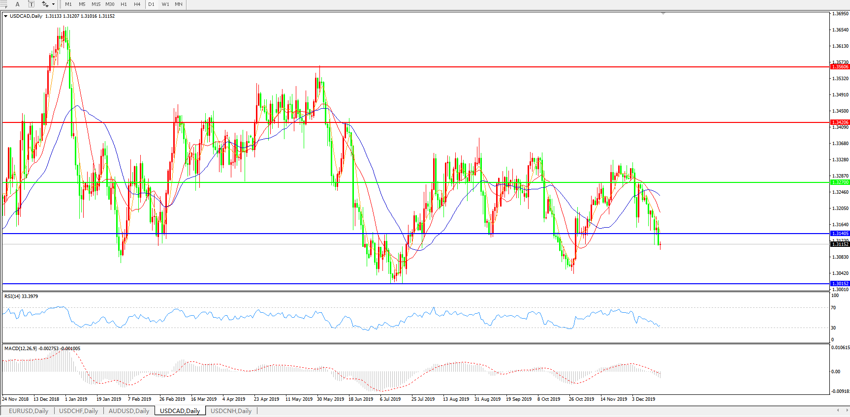 美元兑加元USDCAD    日线图: