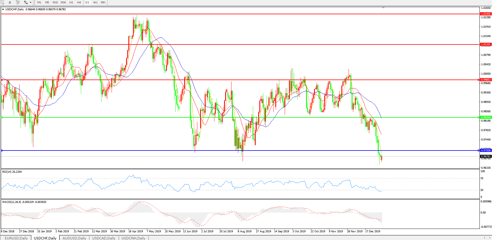 美元兑瑞郎USDCHF 日线图: