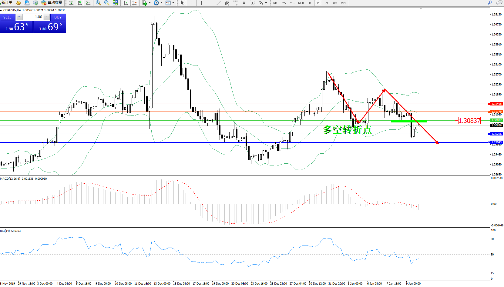 交易策略:1.30837下方看跌,目标1.302861.29943