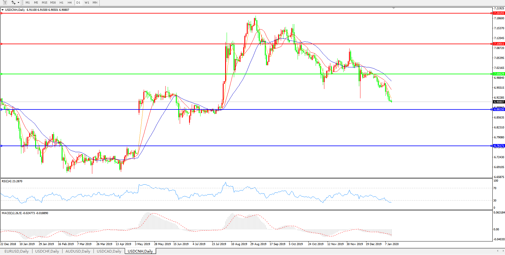 美元兑人民币USDCNH    日线图: