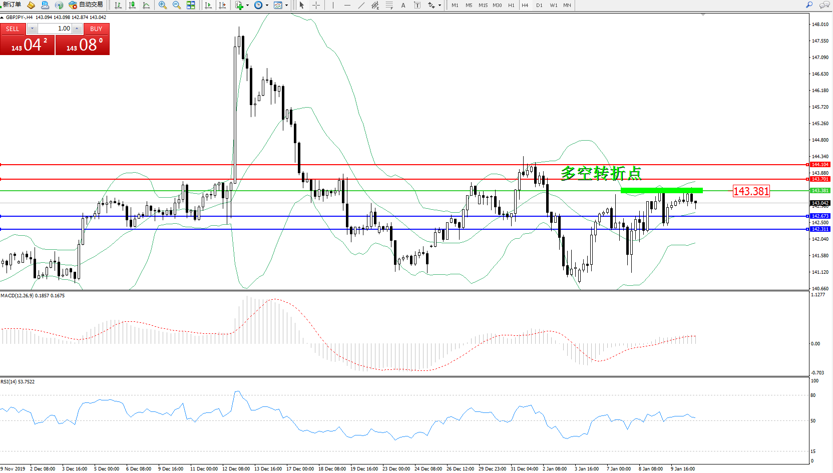交易策略:143.381下方看跌,目标142.673、142.311